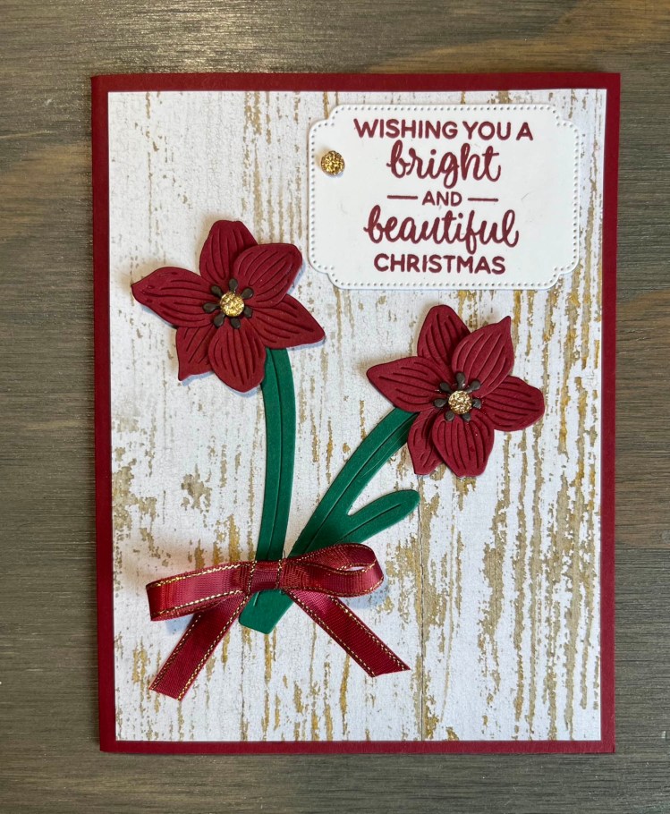 This card was one of my favorites as I love amaryllis flowers. The die cuts make putting together the 3D flowers so simple.