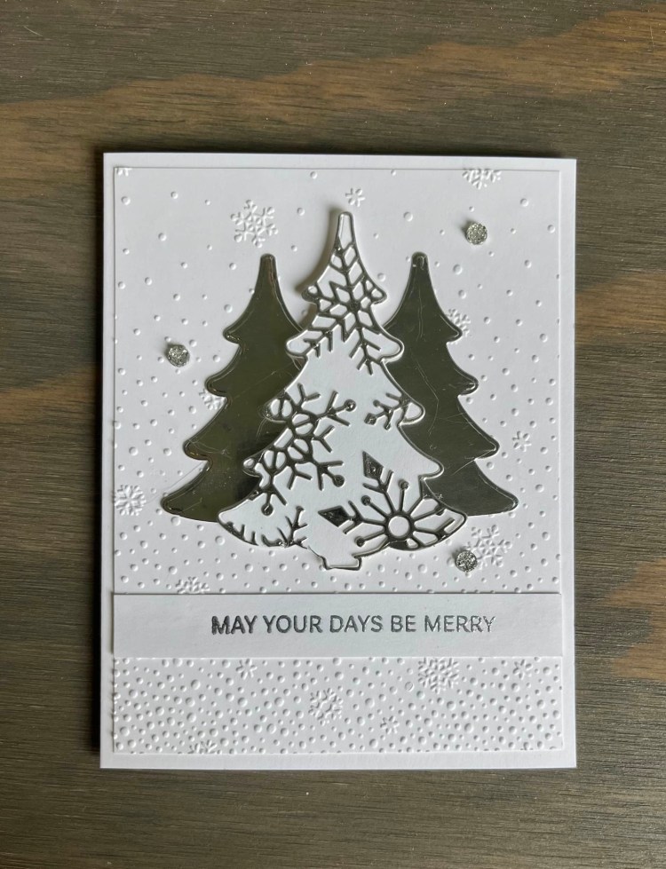 This design goal of this card is simple & elegant using the silver foil and silver accents. We also heat embossed the sentiment with silver embossing power for a 3D feel for the sentiment.