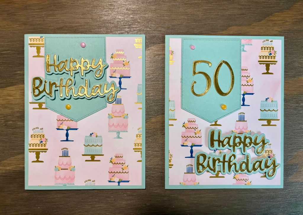 This one was a fun one to make using the Wildflower Birthday DSP. This paper has beautiful gold accents. The campers had a choice of adding an age to the card using the dies from the Birthday Celebrations suite.