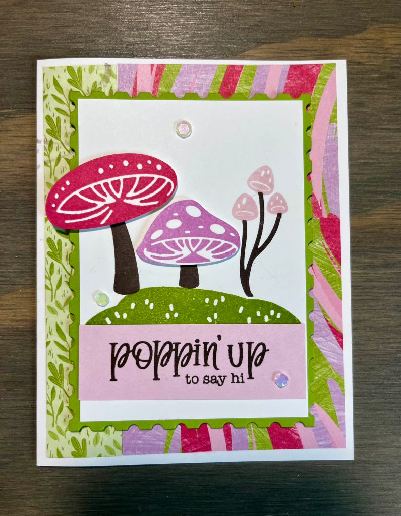 Most people love or hate mushrooms but either way, this set is so cute. The sentiment is adorable especially when you have mushrooms popping up off the card with dimensionals. This one uses a coordinating builder punch.
