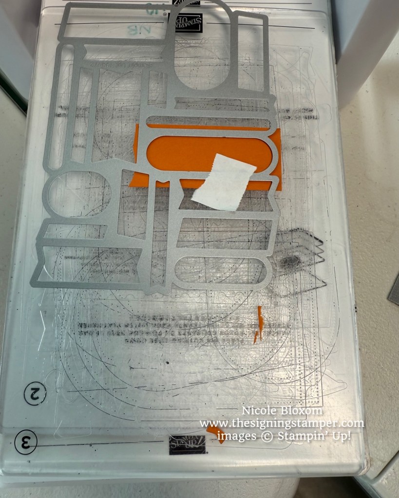 For the banner, I used the More Messages Die to cut out the Pumpkin Pie banner. For the “Spooky” sentiment, I used Versamark and Black Embossing Powder to heat emboss the sentiment. The paws on the cat stamp were colored carefully with my Stampin’ Write Basic Black marker and then stamped onto the banner to make it look like the cat is holding the banner. At least that is the intention I am going for! Below is the die I used for the banner.