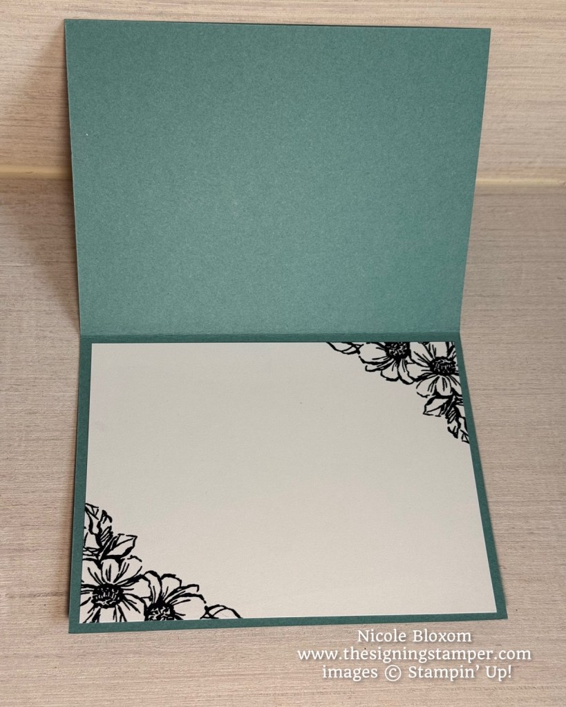 For inside, I stamped the 2-flower image in the corners of a Basic White panel before adhering.