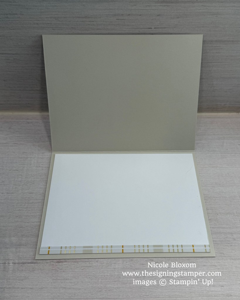 For the inside of the card, I decorate a panel of Basic White with a small strip of the same DSP.