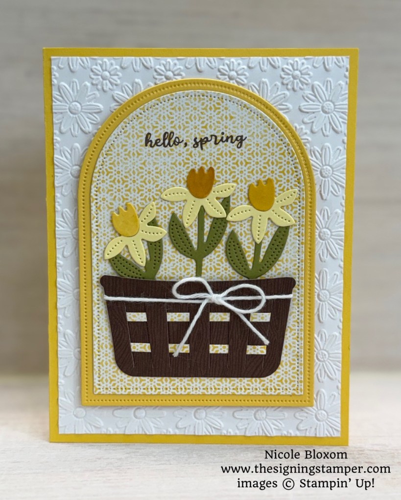 This is adorable Nicole 🙂 Those daffodils are perfect in that basket, and I love that embossed background.